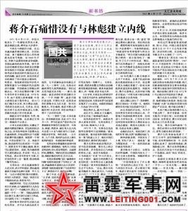 蒋介石得知林彪折戟沉沙,禁不住老泪纵横。蒋介石之所以悲怆泪涌,并非留恋自己与林彪的师生之谊,而是另有隐衷―――正当林彪在“文革”中出尽风头,大红大紫时,偏居台湾的蒋介石在国民党一次中常会议上就直截了当地说:“我不相信林彪这个人会忠于毛泽东。”