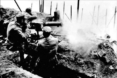 “只见我方战壕挖好了又炸平,炸平了又重挖,整个山头,几乎被炸弹炮弹翻了过来。在血肉与泥土互相搅拌、互相渗透的土地上,士兵们正在抢挖战壕、掩体。他们的脸都是烟尘和鲜血,牺牲的战士身上棉衣被炮火撕裂成缕缕碎片。没有炸倒的树木,只剩下光秃秃的树干和大枝丫。在树丫上,牵挂着被炮弹炸碎的衣带和破布,残肢断臂。”王道平《长留浩气满乾坤》(《原国民党将领抗日战争亲历记—闽浙赣抗战》中国文史出版社1995年5月)