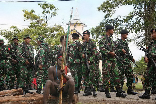 印度尼西亚巴布亚地区两个部落大约500人18日上午展开部落战争,造成了二死一伤。两个部落之间使用传统冷兵器互相攻击。这里的人们一直以来都有一个古老的传统,那就是为了解决矛盾要上演一场“传统战争”,所以连警察也没办法制止。   两个部落在这场争斗中都使用传统的部落武器,比如用植物和其他天然材料做成的矛和盾。由于参战的有数百人,警方很难将双方分开。在场的警方人员中有4人中箭。另有四辆车子被纵火烧毁,其中一辆是警方的装甲卡车。