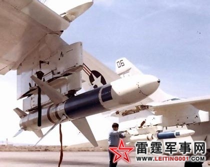 (4)A-6B的主要武器是AGM-45“百舌鸟”反辐射导弹和AGM-78标准反辐射导弹。前者使用Aer-5A发射器,后者使用LAU-77A/A发射器。在机翼下的N0.1、N0.2、N0.4和N0.5挂架上各挂1枚。